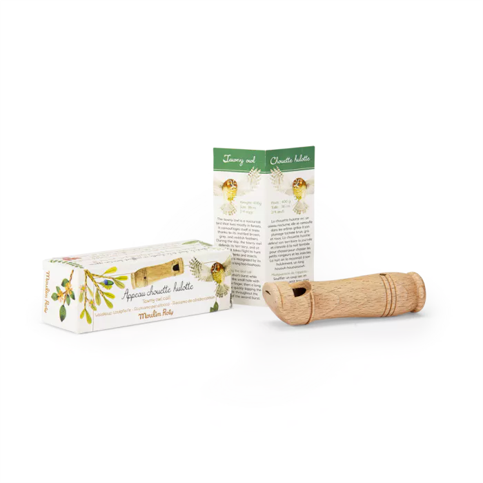Un appeau en bois fabriqué artisanalement en France pour imiter le hululement de la chouette hulotte. Une façon ludique et poétique d'initier les enfants aux chants des oiseaux nocturnes.