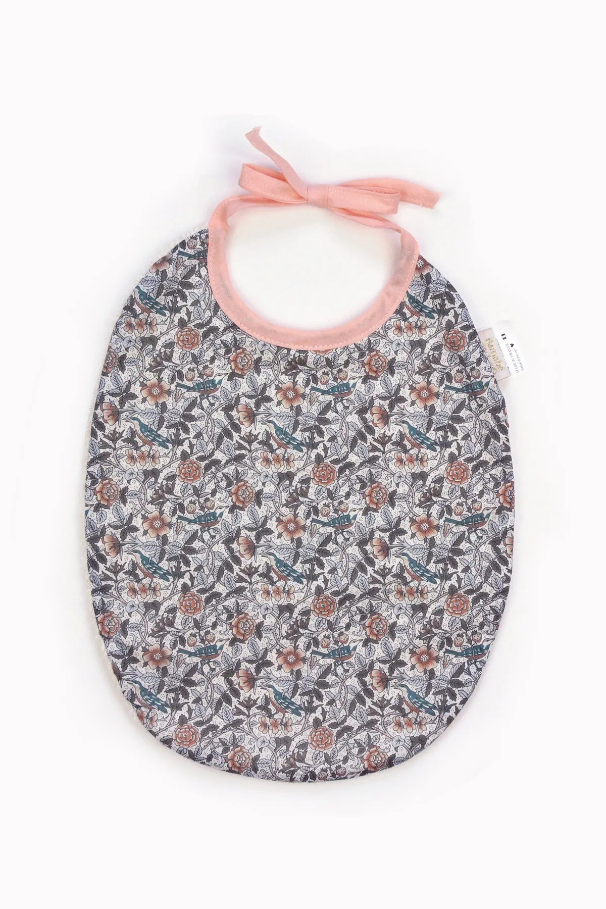 Un coté en éponge pour éviter toutes les catastrophes et un coté en si joli tissu Liberty pour faire des sourires chez Bonne Maman ... Des couleurs gourmandes et des motifs délicats ... Ce grand bavoir fera un très joli cadeau de naissance !