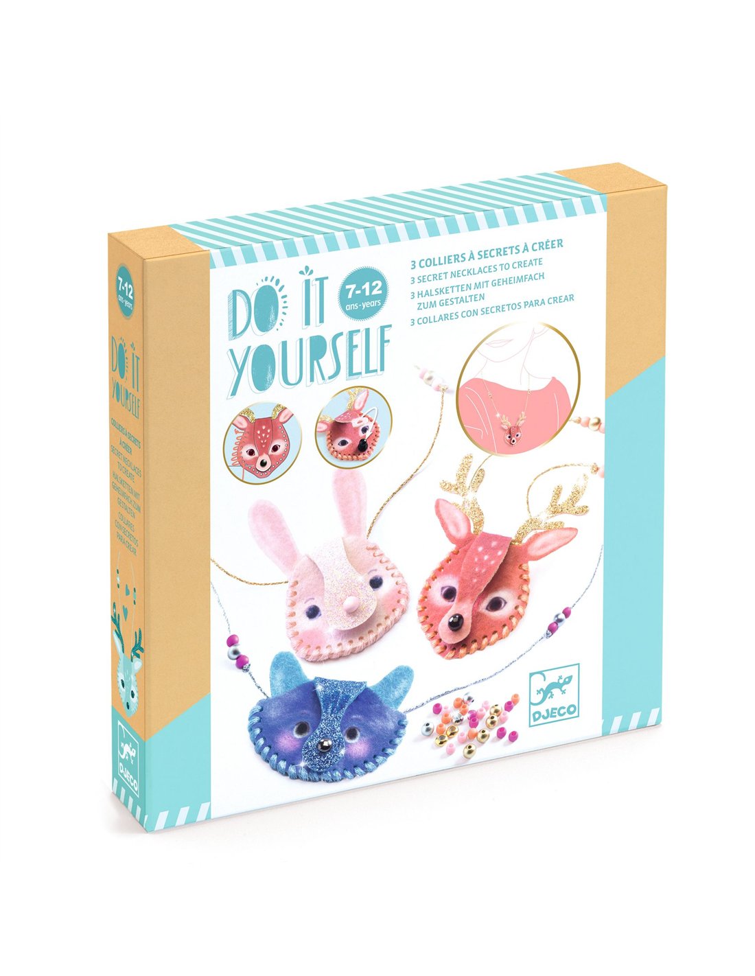 Un kit créatif pour créer 3 colliers à secret "étincelants". En suivant les instructions simples et détaillées, les enfants vont assembler de jolis colliers tout en s'initiant à la couture. Chaque collier est pourvu d'un pendentif qui s'ouvre, permettant d'y cacher un mini secret...