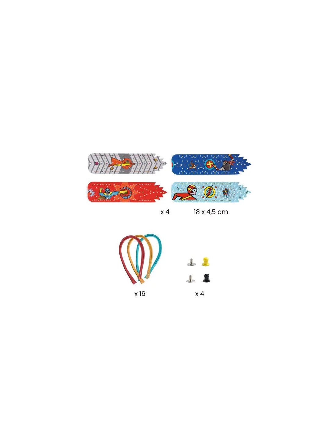 Découvrez le coffret Bracelets de force à créer Super-pouvoirs de la collection Do It Yourself de Djeco, un coffret créatif pour les enfants à partir de 5 ans, permettant de confectionner 4 bracelets de super-héros avec de super pouvoirs!