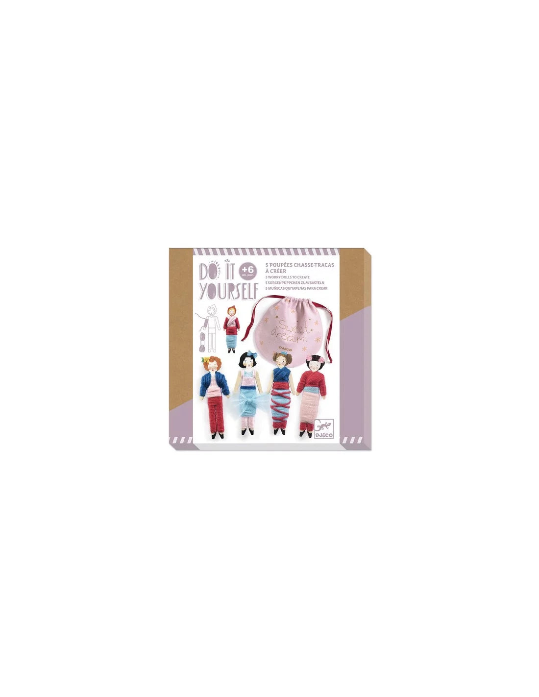 Découvrez le coffret 5 poupées chasse-tracas sweet night de la collection Do It Yourself de Djeco, un coffret créatif pour les enfants à partir de 6 ans. Inspirées d'une tradition du Guatemala, ces petites poupées s'occupent de chasser les petits tracas et permettent aux enfants de passer une douce nuit.