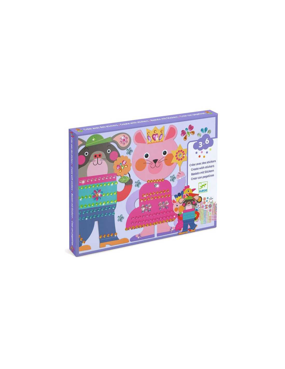 Découvrez la pochette créative Créer avec des stickers Eclatants de Djeco, une activité créative pour les enfants de 3 à 6 ans. Une activité de collage pour décorer 4 animaux avec des pierres qui brillent!