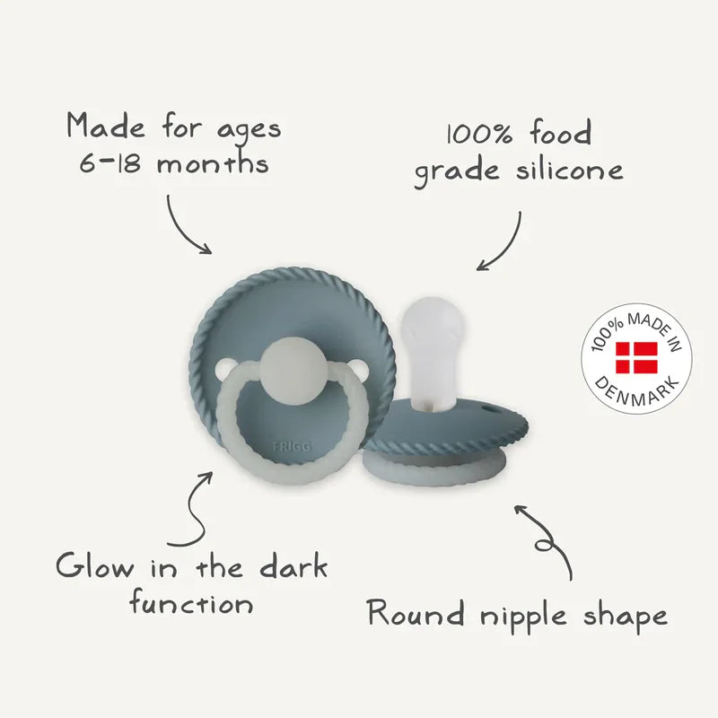 Chaque sucette FRIGG allie design minimaliste et fonctionnalité. Fabriquée au Danemark, la sucette FRIGG - Rope Night Silicone Taille 2 - Bleu Pierre combine élégance et praticité au quotidien, et est conçue pour répondre aux normes les plus exigeantes en matière de sécurité et de confort pour bébé.