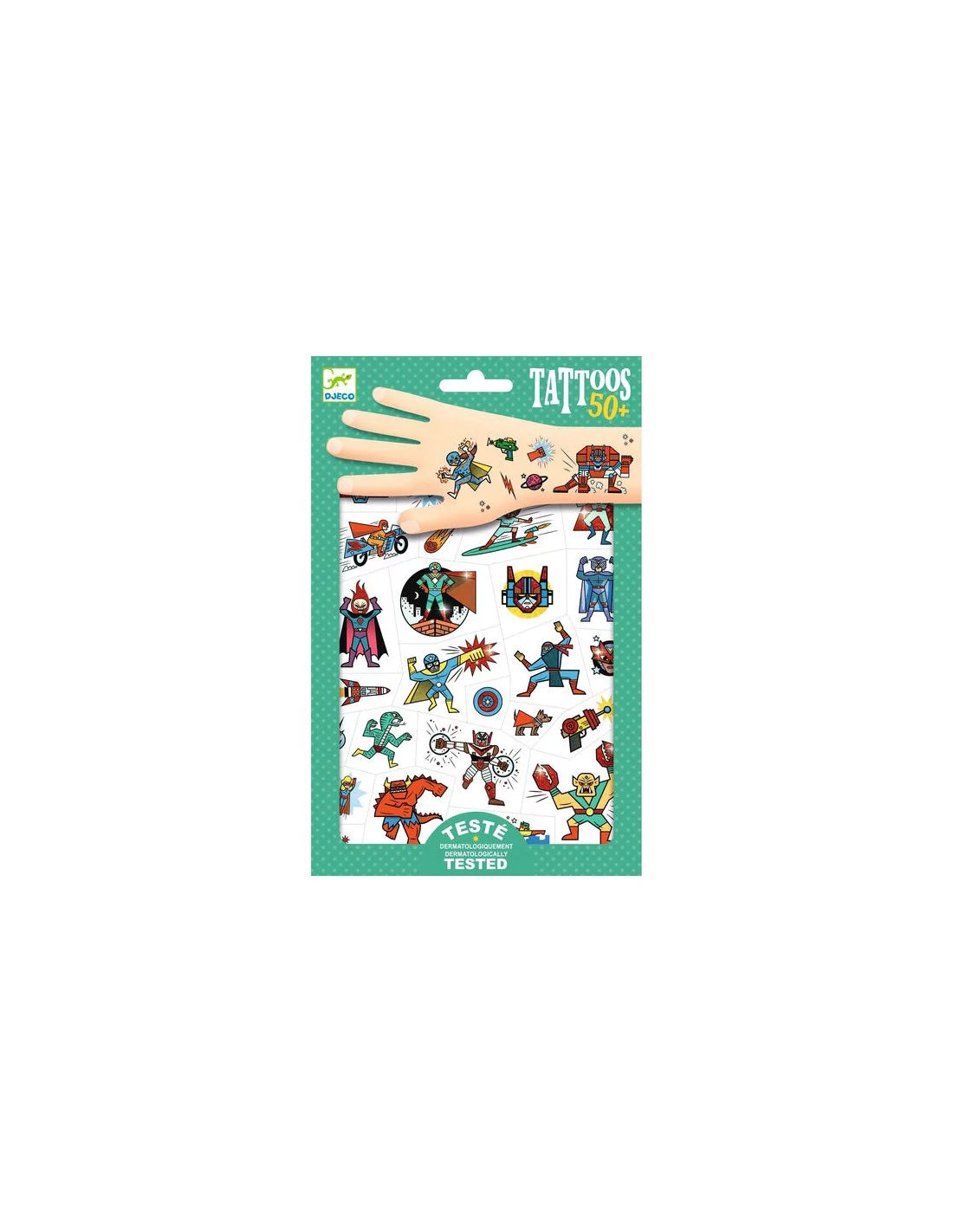 Djeco vous présente ses magnifiques tatouages "Heroes vs villains", de jolis tatoos avec des effets métal. Un accessoire de déguisement indispensable pour une animation réussie et un déguisement abouti à partir de 3 ans.
