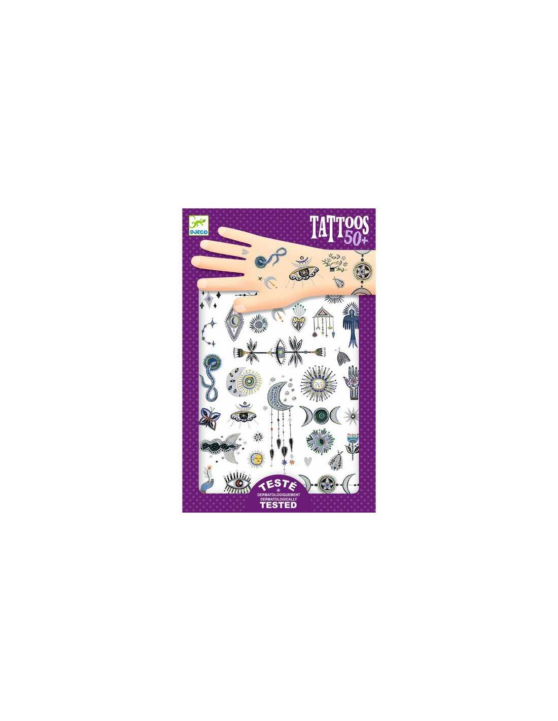 Découvrez les tatouages Wicca de Djeco, de jolis tatoos testés dermatologiquement et inspirés par les symboles de la magie blanche. De quoi être envoutés par ces motifs métallisés!