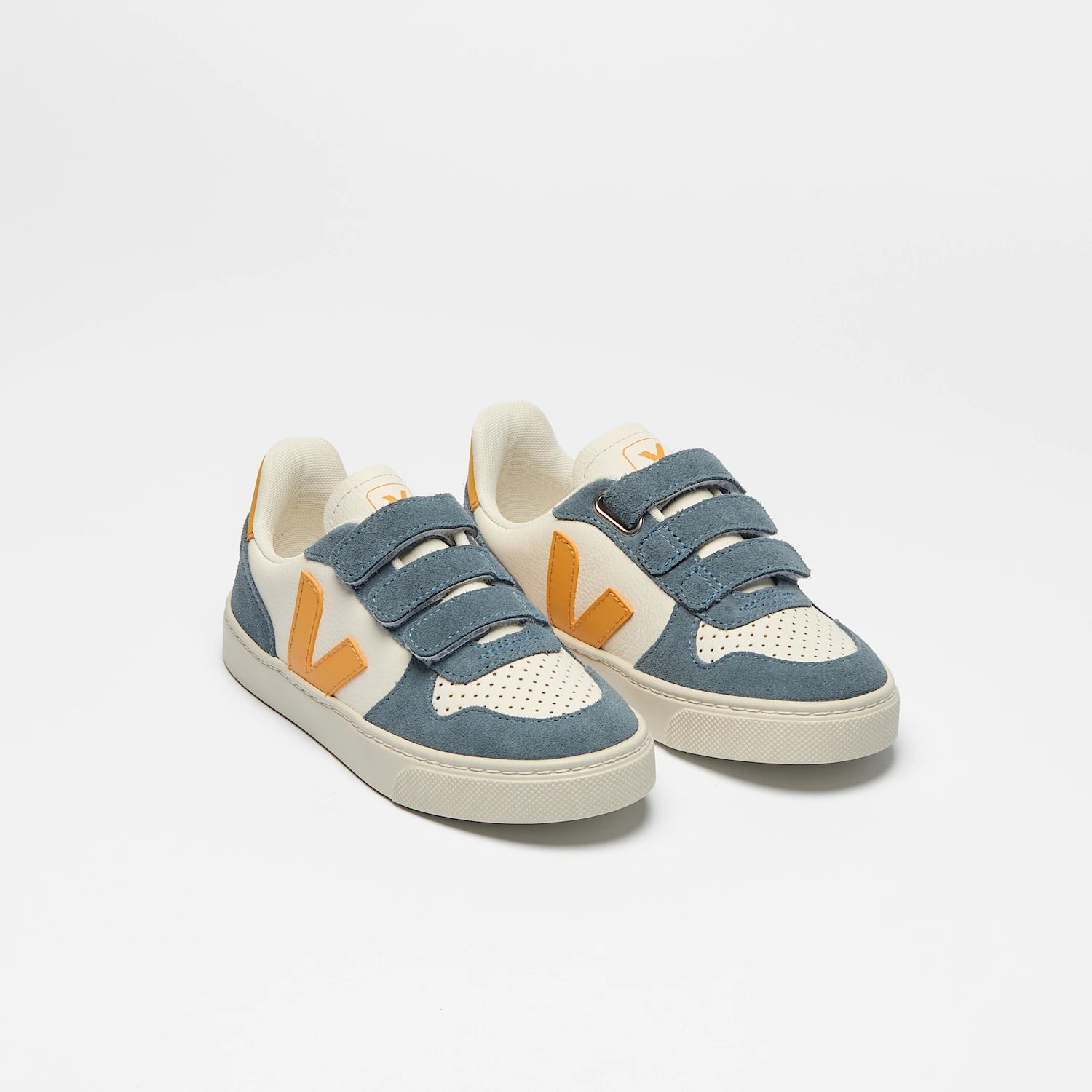 La V-10 Kids s'inspire du style des baskets des années 90. Ce modèle en cuir bovin issu d'élevages d'Uruguay est tanné au Brésil dans le respect des normes environnementales. Tige en cuir, semelle intérieure en canne à sucre et coton bio, semelle extérieure en caoutchouc naturel d'Amazonie.